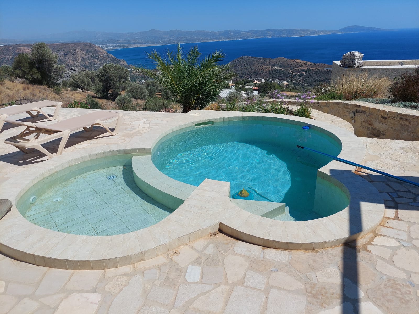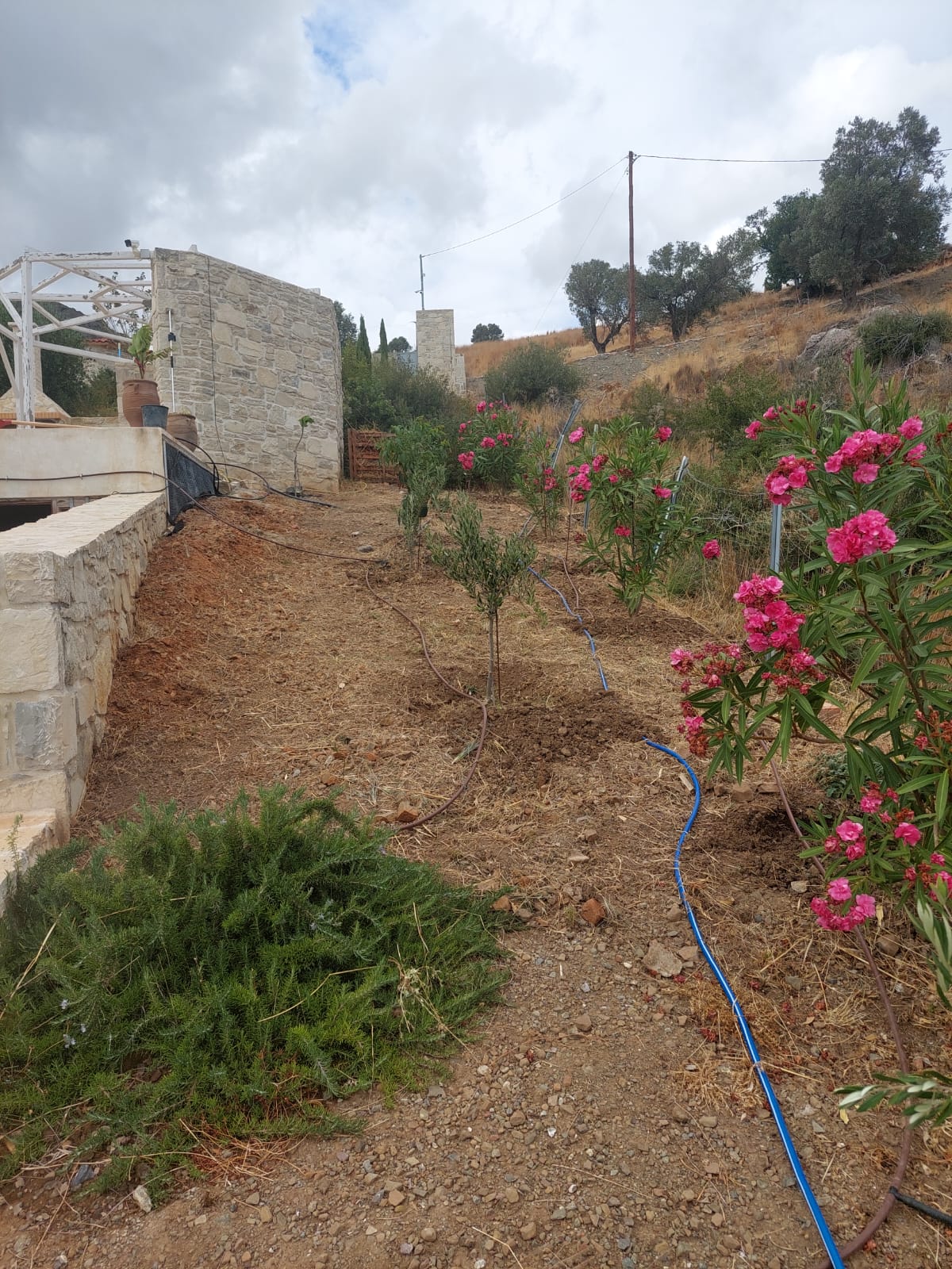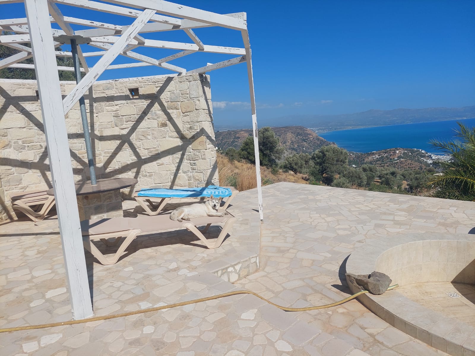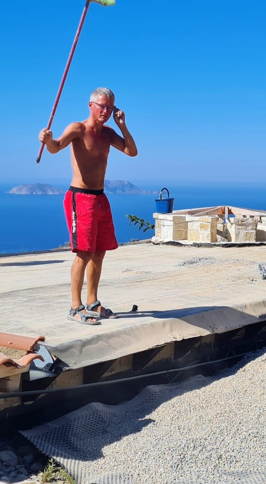 Im August wurden die Arbeiten aus Juli fortgesetzt. Beton auf die Fußbodenheizung, Abdichtung Dach, Pool, Bäder und Dachterrasse. Holz erneut gestrichen, Gartenbewässerung optimiert. Aber auch die Insel Paximadia und die Burg Frangokastello besucht und das türkise Meer genossen.