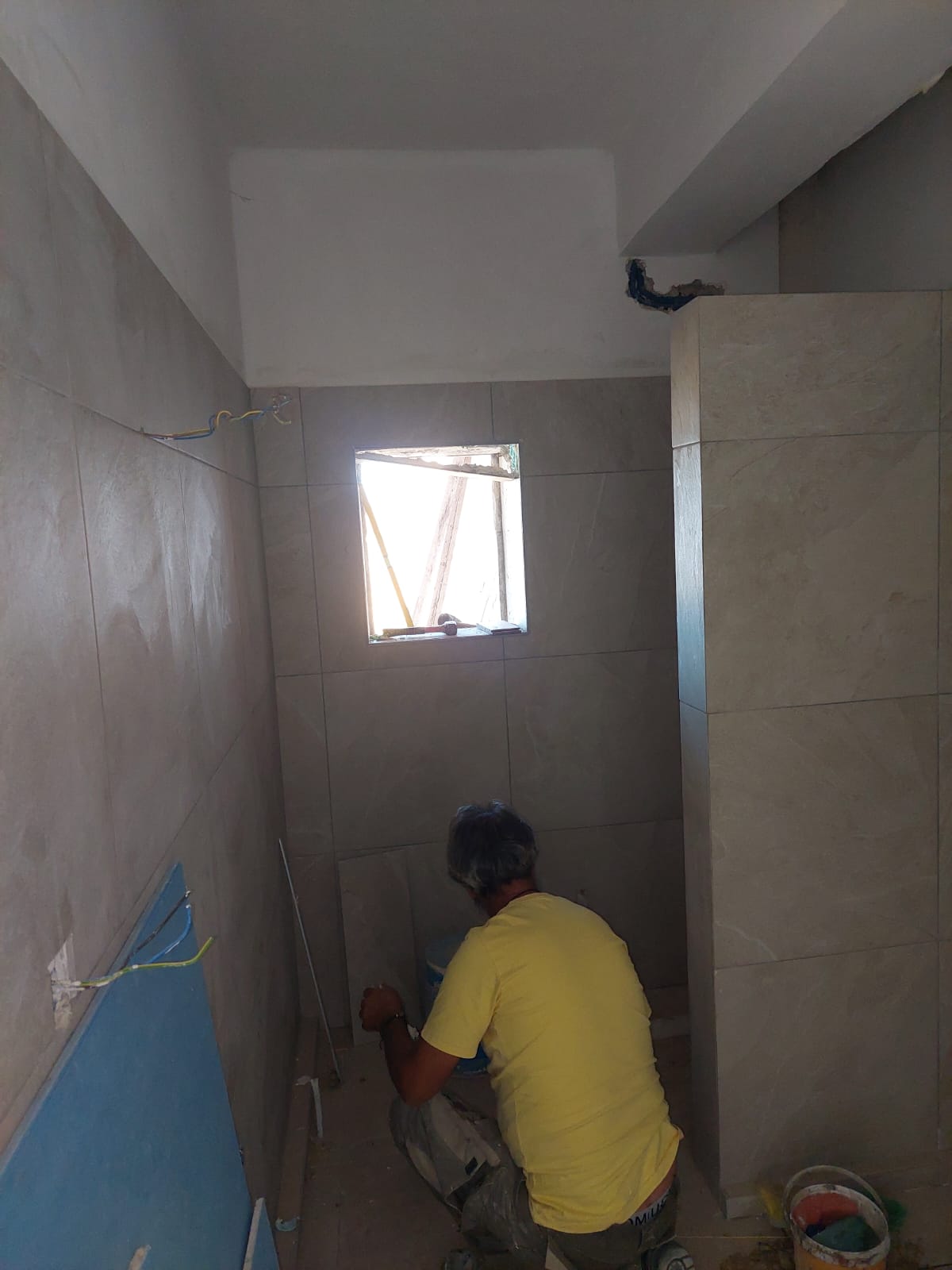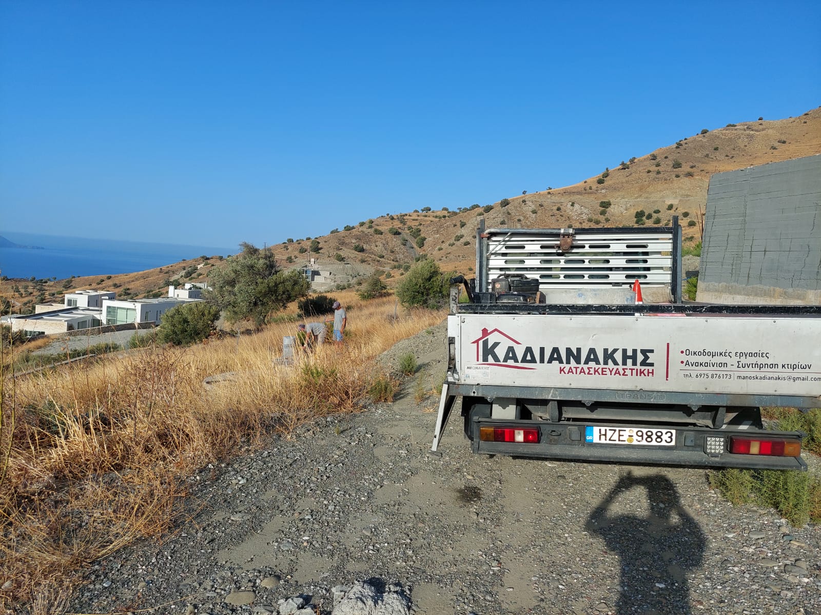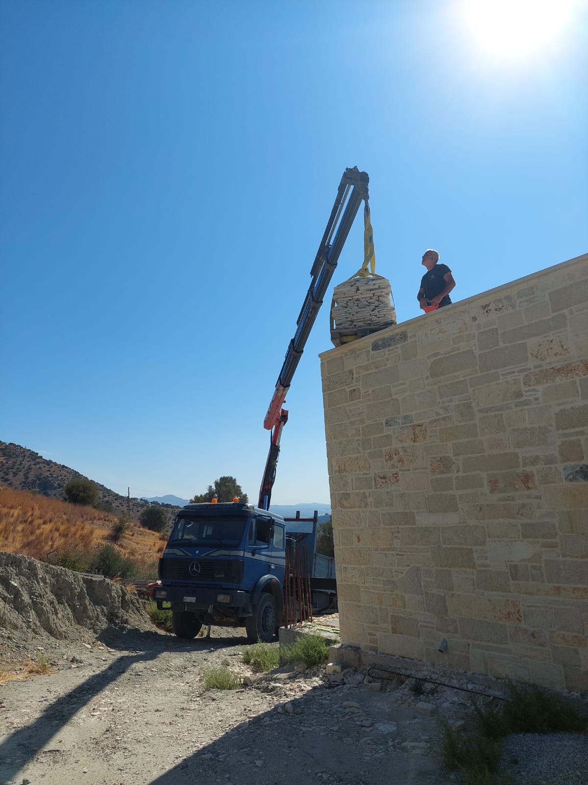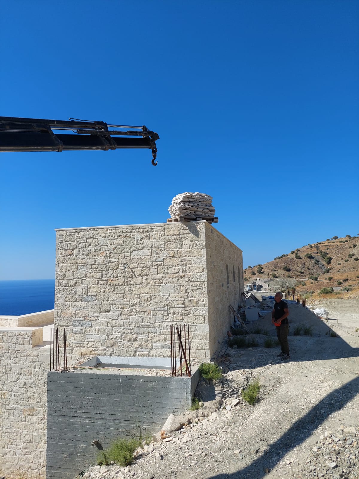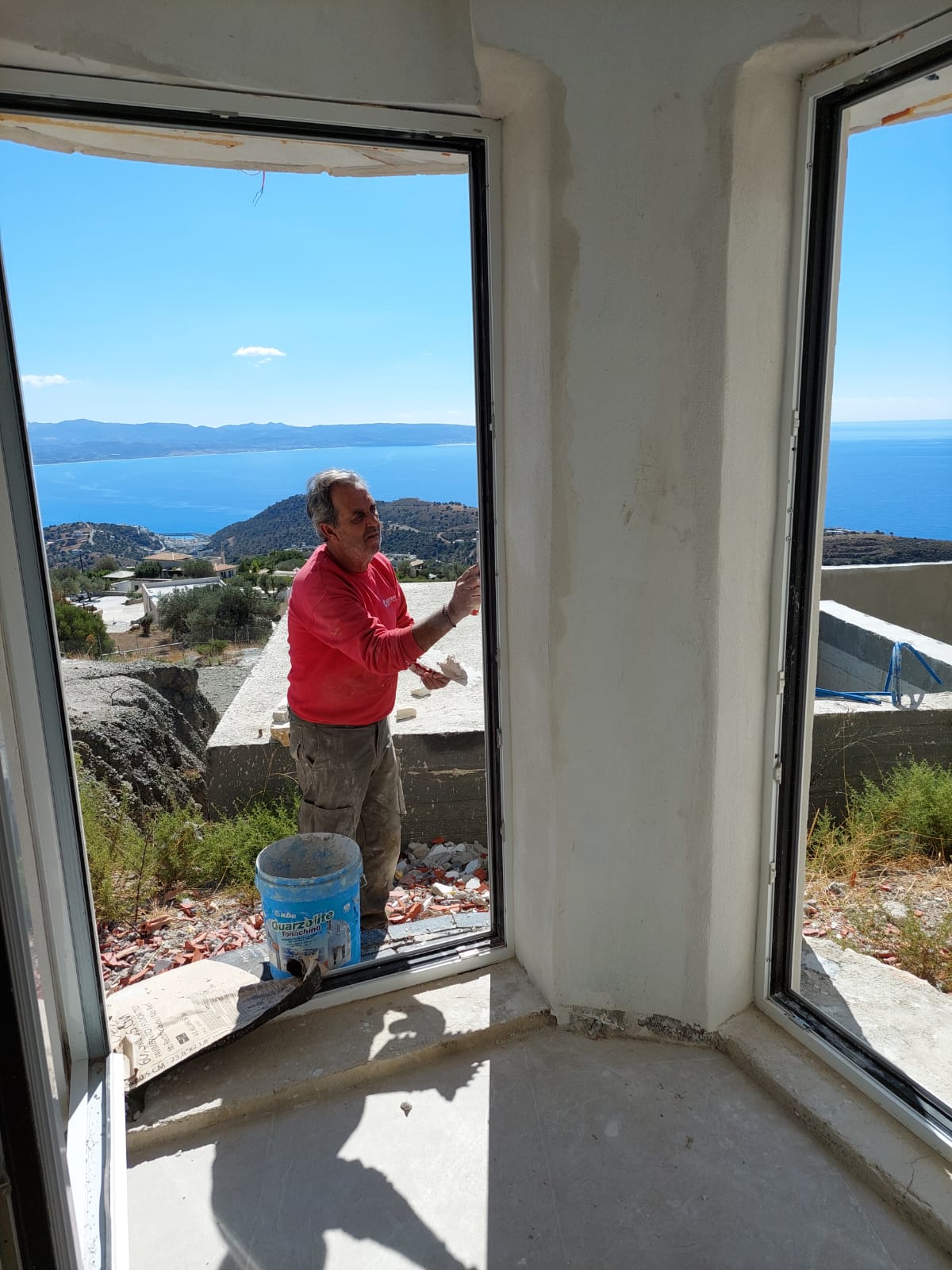 Wir sind begeistert über den Baufortschritt und danken allen auf Kreta gefundenen Handwerkern sehr! Tischler und Fliesenleger auch super, dazu draußen Nordwand erstellt sowie den Pool- und Terrassenbau vorbereitet.