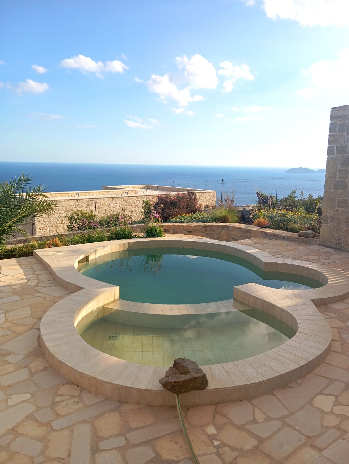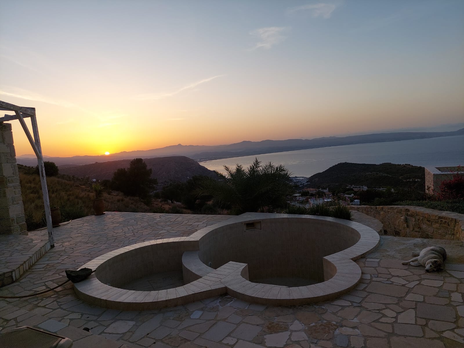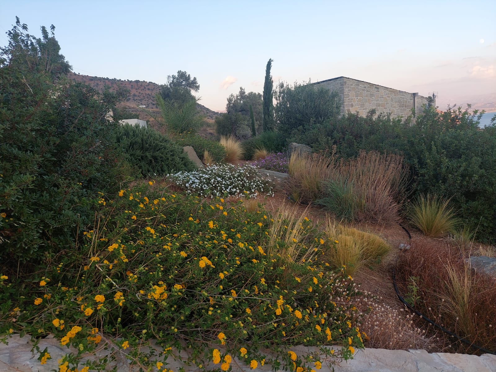 Aber die kleine dritte Wohneinheit ganz oben, das „Traumplateau“, nimmt Formen an. Für Paare, die dort von April bis Oktober/ November outdoor leben wollen. Heißt, Küche und Dusche unter freiem Himmel (Bad und Schlafzimmer haben Dach), kleiner eigener Pool und Terrasse mit Meerblick – über das darunter liegende kleine Haus für 2 bis 4 Personen hinweg.