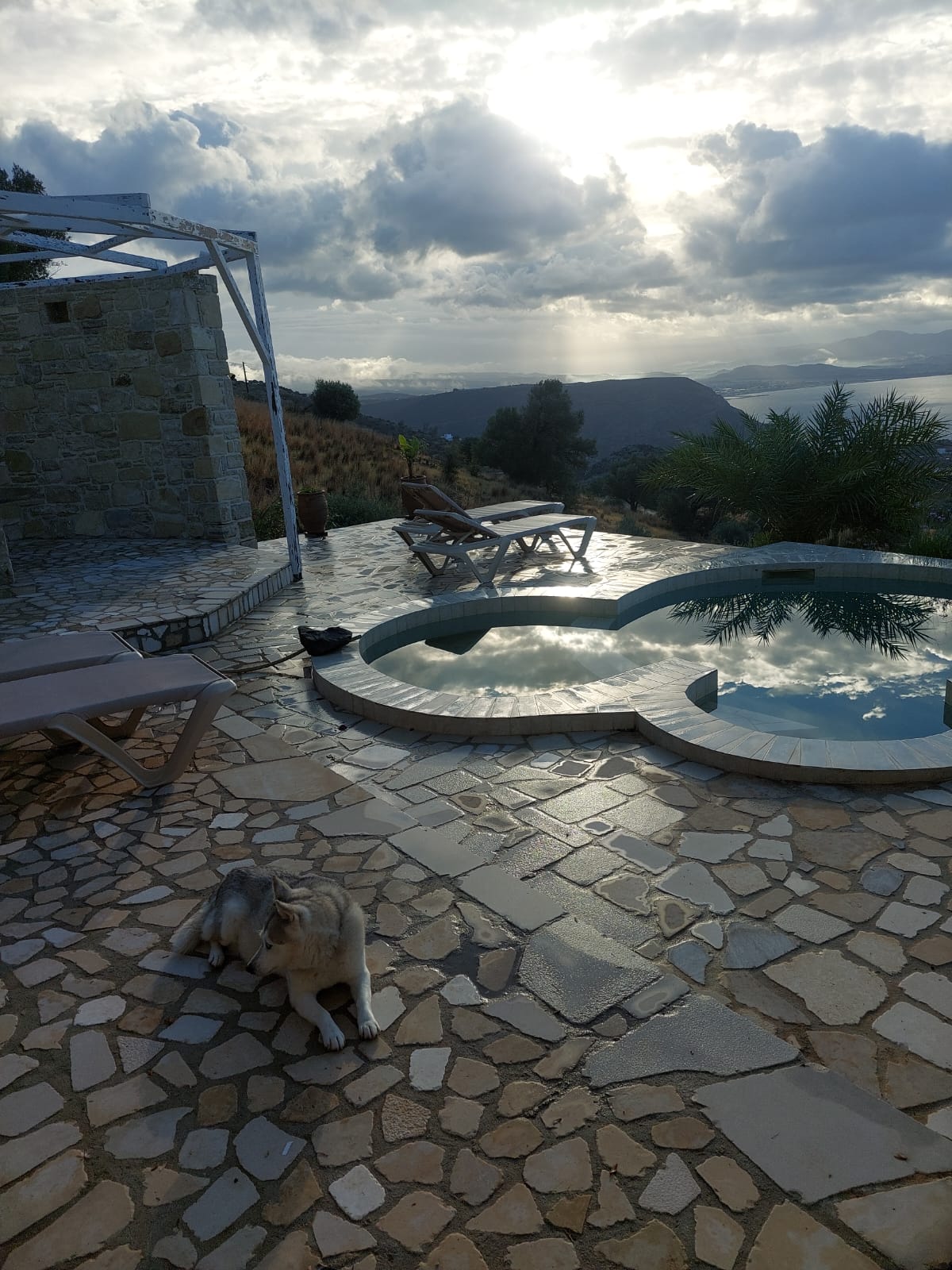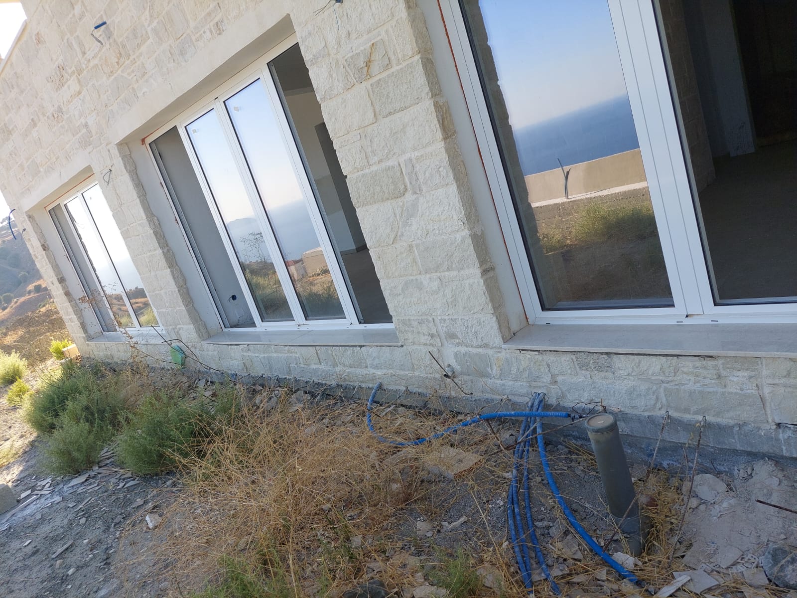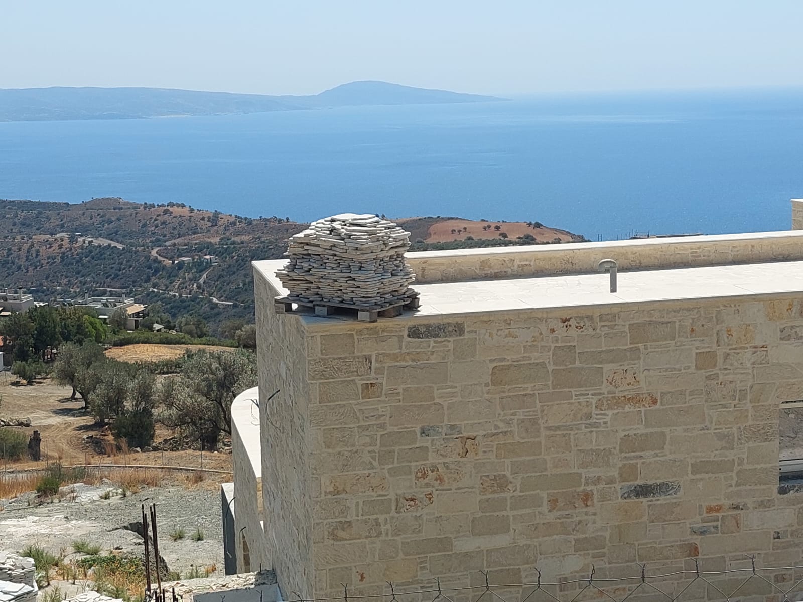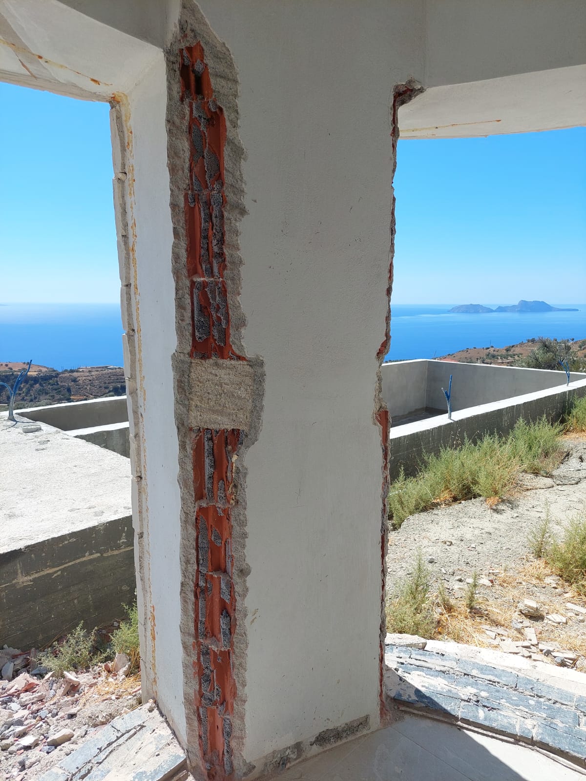 Das Haus wird erdbebensicher gebaut, top isoliert und wird ganzjährig nutzbar sein. Der unverbaubare Blick Richtung Ort und Meer ist jeden Tag ein Traum. Ein Tischler aus dem Ort hilft prima, jetzt stehen die Beton-Außenarbeiten an Nord-Zufahrt, Terrasse, Pool und Technikraum an.
