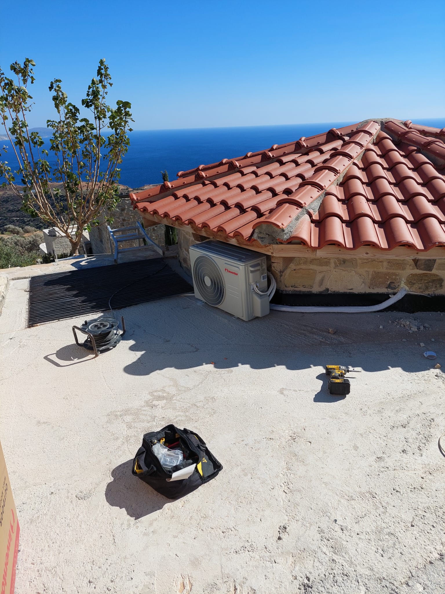 Stromanschluss und Installation Klimaanlage innen sowie außen Arbeiten an Pools, Terrassen und Pavillion im Fokus. Zielgerade, dann kommt im Winter der Garten dran.